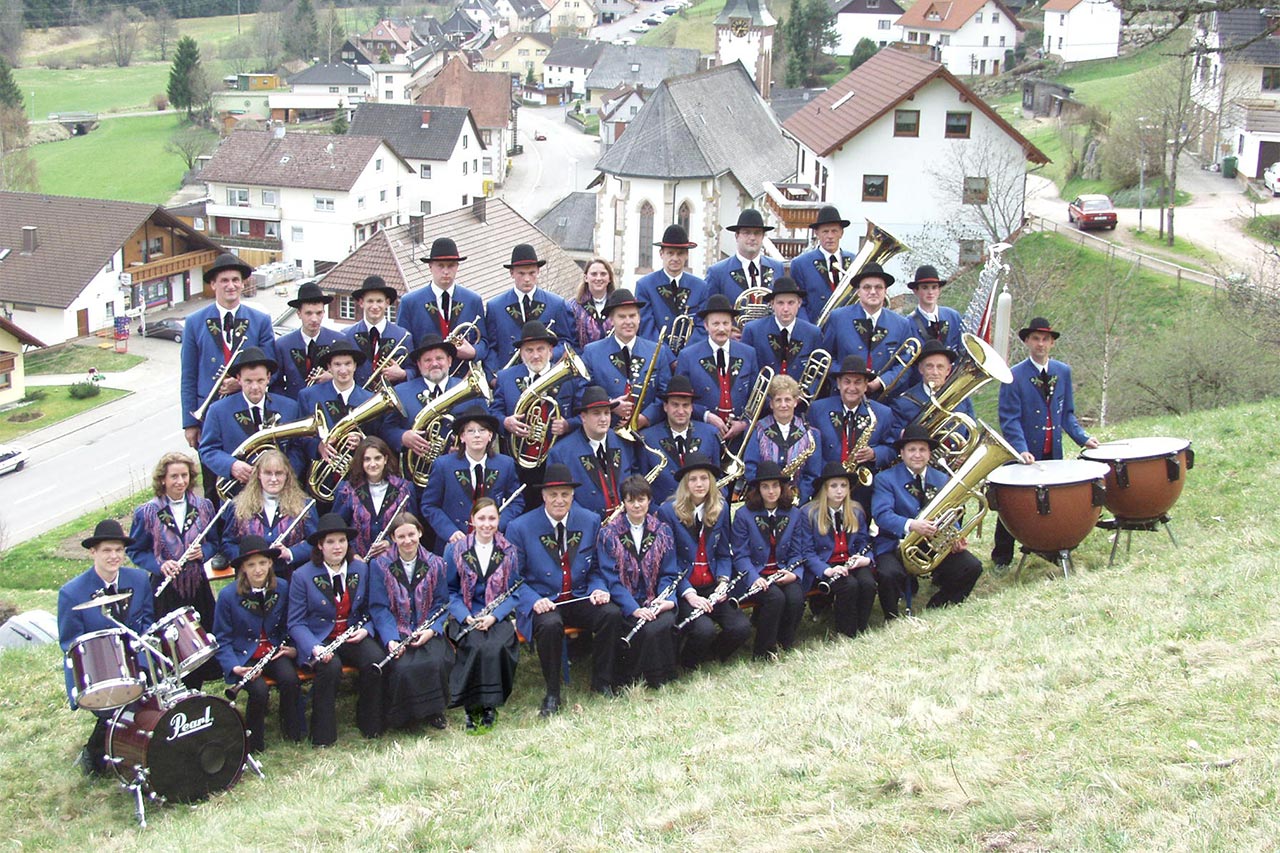 Der Musikverein Hammereisenbach beim 50-jährigen Jubiläum_ Vorne v.l.: Hans Benz, Petra Knöpfle, Brigitte Winterhalder, Sabine Waibel, Michael Neininger, Dirigent Lothar Mai, Ursula Willmann, Barbara Schwörer, Sonja King, Helmut King Mitte v.L.: Günter Nock, Armin Kaltenbach, Bruno Honeck, Robert Mai, Karola Winterhalder, Richard King, Angelika Baier, Helmut Mai, Bernhard Stritt, Hans Tschurtschenthaler, Josef Willmann, Thomas Demattio Hinten v.l.: Erich Ketterer, Rolf Ketterer, Michael Waibel, Robert Scherzinger, Georg Ketterer, Günter Baier, Peter Knöpfle, Christof Günter